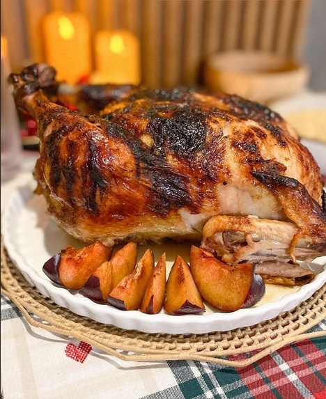 Levar ao fogo baixo o açúcar mascavo, o molho shoyo e manteiga até caramelizar. Pincelar o frango a cada 15 min com essa calda até que fique bem dourado.